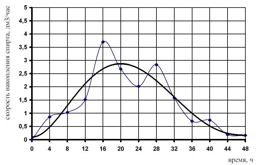 Очевидно, что процесс вакуумного брожения нелинейный, сопровождается циклами с характерными периодами минимума и максимума. Возможно это связано с накоплением «критической массы» дрожжей, которые периодически массово размножаются и гибнут.